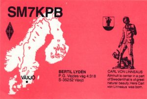 60 år fyller Bertil Lydén, SM7KPB, Ingelstad. Han fick sitt T-certifikat #15412 den 29 juni 1979 (samma dag fick även broder Ingvar SM7KPI sitt cert) och den 7 februari 1980 blev Bertil medlem i SSA. Bostadsorten var vid denna tid Växjö, men 1982 flyttade han knappa två mil söderut till Ingelstad, som fortfarande är Bertils QTH. På 90-talet tog även sonen Magnus certifikat – SM7WZM. QSL-kortet är från den 19 augusti 1980 då Bertil hade ett QSO med Olle SM5VC/7 på 2 meter FM.