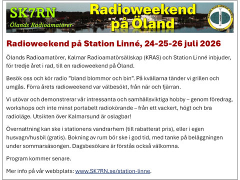 [Läs mer] Hasse:s SM0BYD QSL-rapport den 5 februari 2026Radioweekend på Station Linné i 2026.