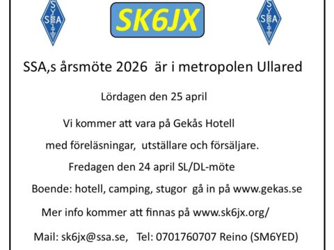 [Läs mer...] SSA Årsmöte 2026 – UllaredKurs amatörradio instegscert – Kungsbacka