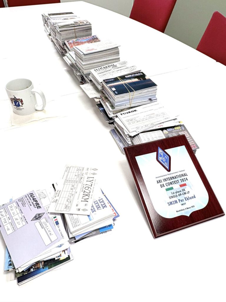 Det tar ju numera längre tid mellan våra QSL-seanser, för att samla ihop några kilogram men, efter tre veckor hade vi sålunda skrapat ihop 17 kilo till den 23 oktober och följande bidrog: JARL, italienska ARI, som inkluderade ett mkt snyggt diplom i form av en plakett för ARI Int. DX Contest 2024, som synes till SM2M (SM2LIY) Per /GRATTIS/ och detta postades f.ö. av BYD, den 23/10, vidare från SRS (Serbien), LRMD (Litauen), SM0MWZ och SM5WVN, SM4EPR, SM6EAT.