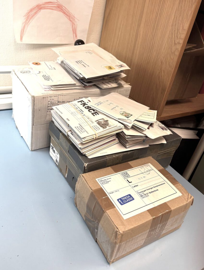 Sålunda hade det äntligen samlats 14 kg på packbordet, från följande avsändare: 7x N9EN, JARL, PZK, SARA (OM), SM5KNV, SK4IL & SM4SEF, SM5ATP, SM7WVZ, SM7PYJ, OE5TXF & MW5A, SA4UDD, UN7CN och SM2CSK.