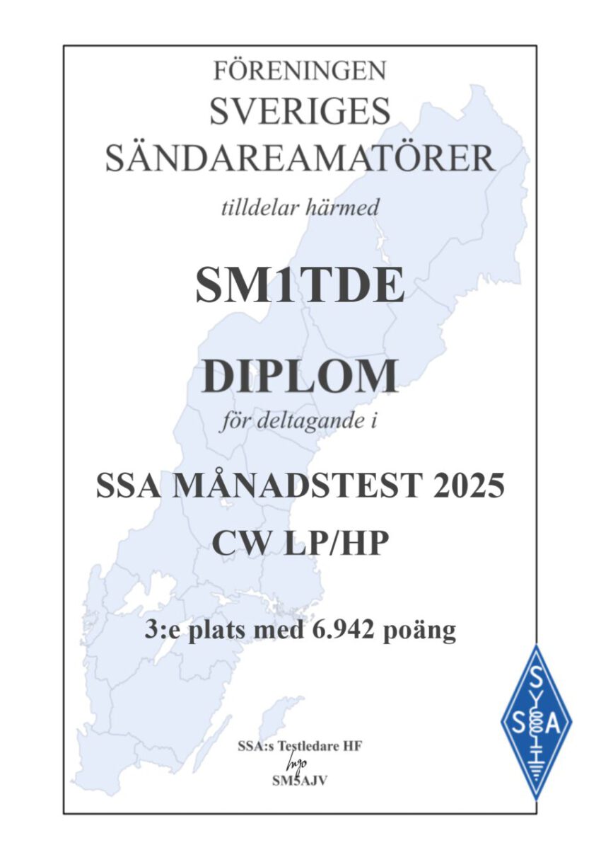 Ingo/SM5AJV har nu sammanställt slutresultatet av SSA-klassikern Månadstesten. Under året deltog minst 56 på CW samt 81 på SSB. CW-delen vanns välförtjänt av Rune/SM5COP, QRP-klassen tog SM0OEK hem. SSB-segrare är SM5EMR, på QRP vann SM2IAR. SK6AW vann klubbtävlingen CW och SK5AA, som vanligt, SSB. Att notera är att två Instegscertare finns med på SSB nämligen SH7CTL samt SH7KLI.