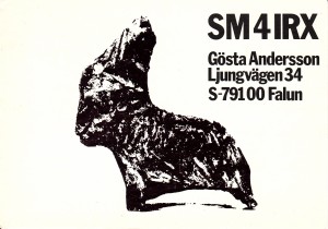 75 år fyller Gösta Andersson, SM4IRX, Falun. Han blev medlem som lyssnare SM4-5908 den 1 oktober 1975. Den 26 juli 1977 skrev Televerket ut B-licens #12328. QSL-kortet är från den 27 augusti 1978 efter ett QSO med SM0BMG på 80 meter SSB.