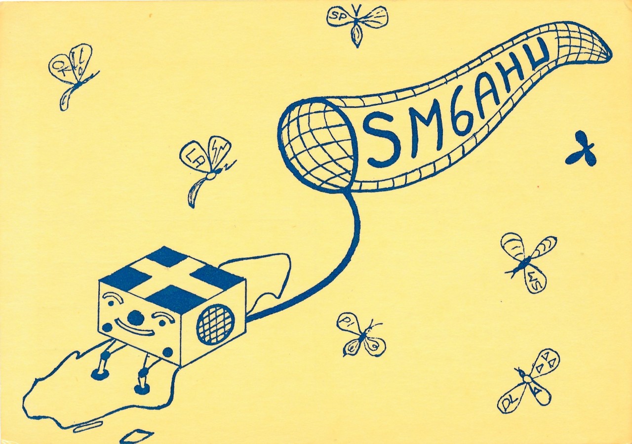 Göran Nilsson, SMØDCI, Nynäshamn, fyller 70 år. Han blev medlem i SSA sommaren 1963 och var med 1:a gången i 1964 års callbok. QTH var Hovsta i Örebro kommun (en mil norr om Centrum utmed riksväg 50), men 1969 flyttade Göran till Nynäshamn, som fortfarande är hans QTH, och från 1989 bor han på samma adress. I 1986 års callbok dyker en fritidsadress i Dyltabruk upp (bara ett par km norr om Hovsta). QSL-kortet är liksom Svens här ovan från ett QSO med Karlsborgs stolthet SL6AL den 10 juli 1963 på 80 meter CW. Görans QTH var fortfarande Hovsta och han sände med 6 watt till en 42 meters longwire.