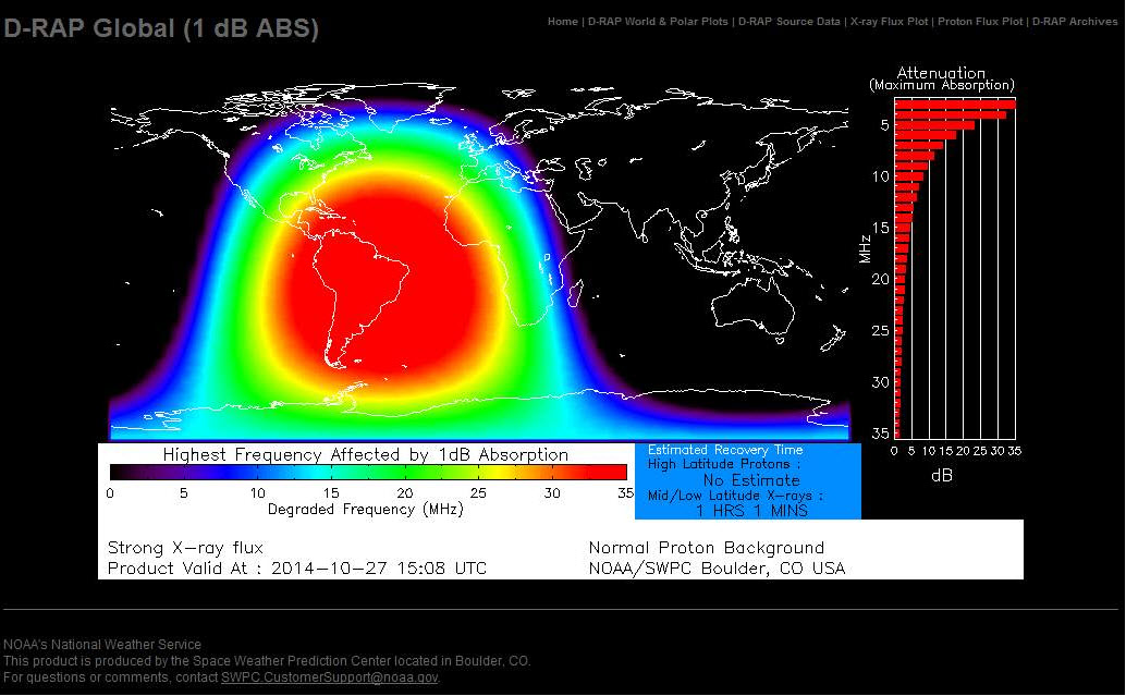 Potential Impacts: Area of impact centered on sub-solar point on the sunlit side of Earth. Extent of blackout of HF (high frequency) radio communication dependent upon current X-ray Flux intensity. For real-time information on affected area and expected duration please see http://www.swpc.noaa.gov/drap.